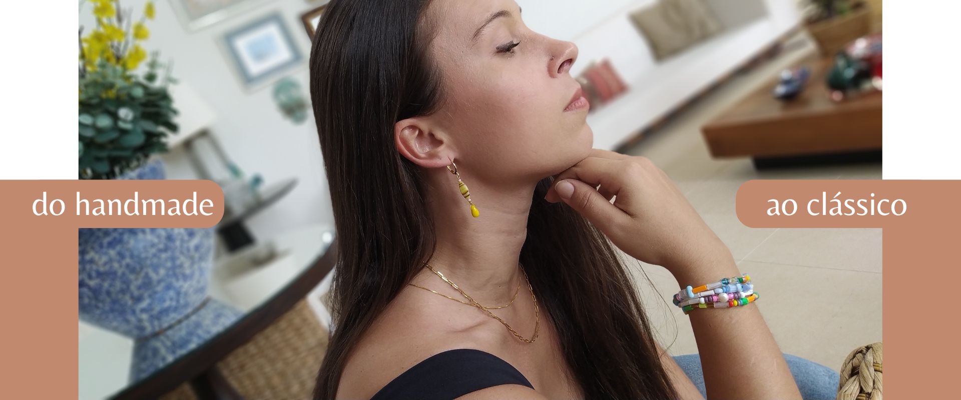 Brinco argola Cléo em contas de cristal de murano amarelo banhado em ouro 18k
